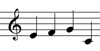 When there is no musical context more complex, the key is determined by the perfect cadence, in which the tonic (or keytone) follows the dominant (that is, the tonic's fifth). (The dominant → tonic succession can be abbreviated as V → I.) Here is an example: